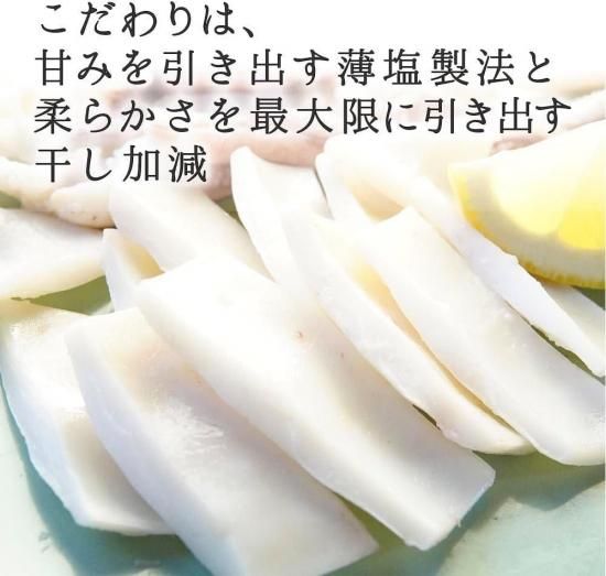 身が甘く、食感も柔らかな白いかを薄塩をし、干しあげることで旨味が増しています。